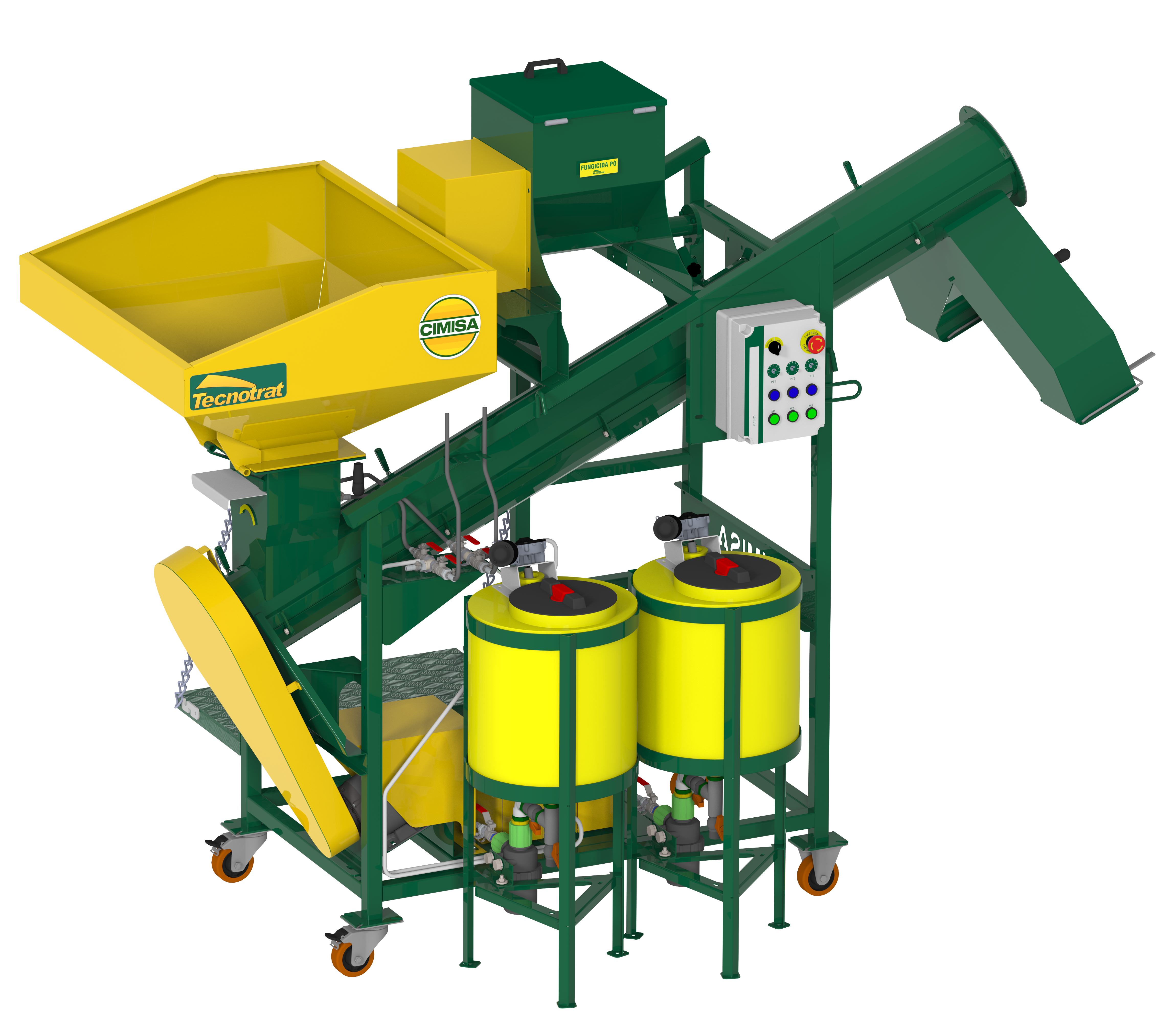 A Linha TECNOTRAT garante cobertura completa de suas sementes, assegurando proteção eficaz contra fungos e insetos do solo. A linha é composta pelos modelos M-25, M-40, M-60 e M-150 Plus Electronic, cada um oferecendo diferentes capacidades de produção e opções de caixas para produtos líquidos, turfosos e em pó.