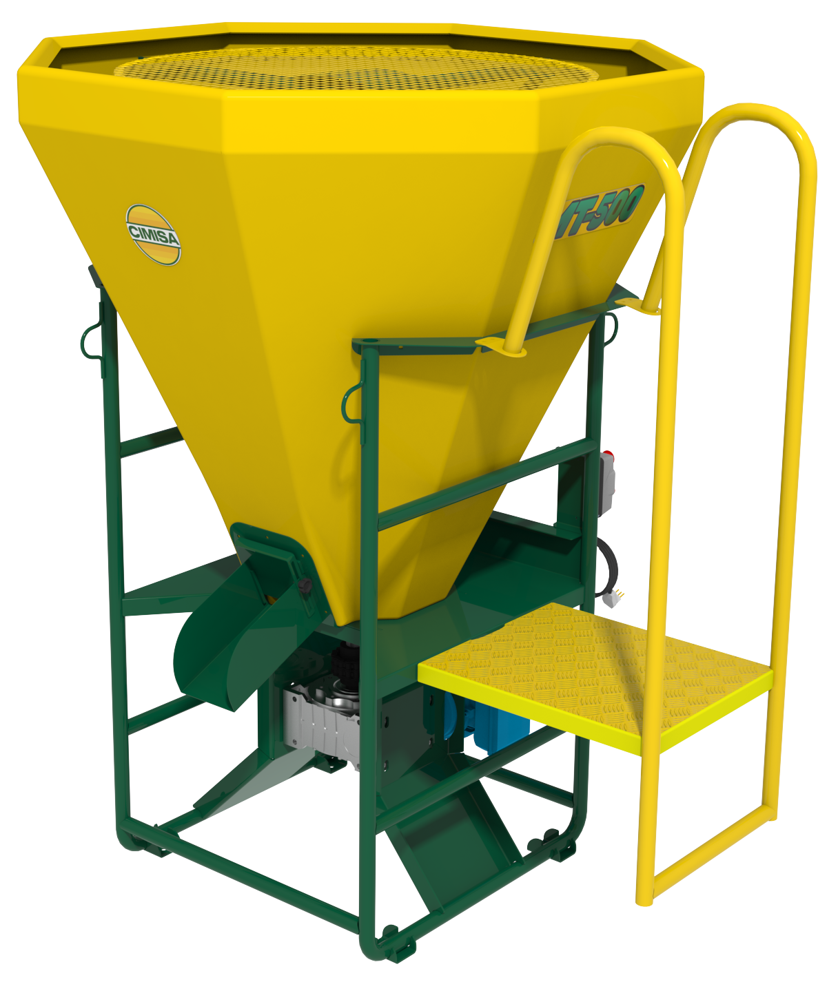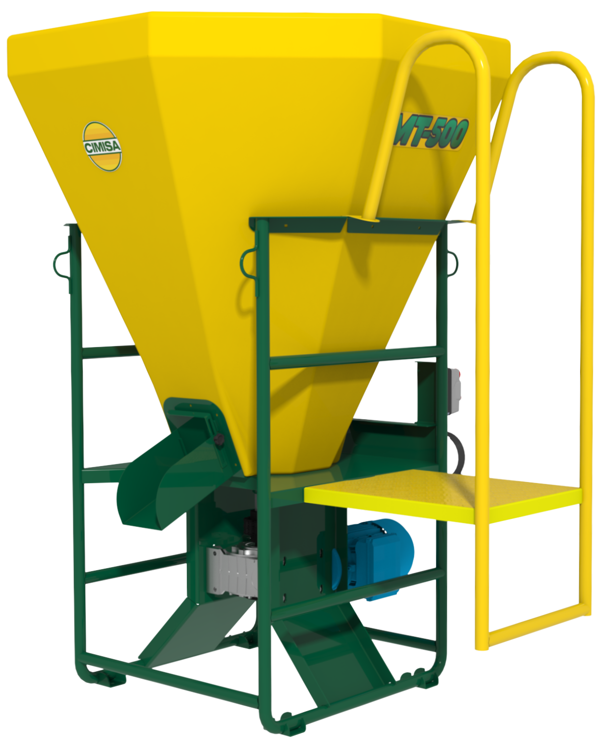 O MT-500 oferece uma capacidade de produção de até 500 kg, com acionamento via motor elétrico e sistema de descarga por gravidade.
